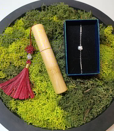 Italijoje sukurti natūralūs kvepalai, kartu su mano rankų darbo papuošalais, akcentuojami subtiliu perliuku. Tai dar vienas prabangus ritualas, atliekamas kasdien, per 365 dienas.
